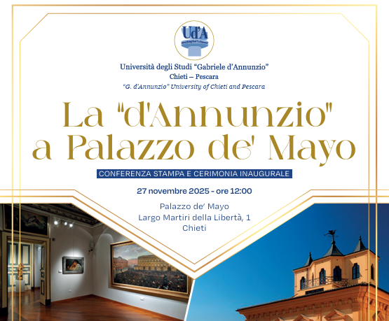 Oggi, 27 novembre 2025, alle ore 12.00, presso Palazzo de’ Mayo a Chieti, ci sarà la Conferenza stampa di presentazione dell’accordo tra la Fondazione Banco di Napoli e l’Università degli Studi “Gabriele d’Annunzio” di Chieti-Pescara per la gestione di Palazzo de’ Mayo.