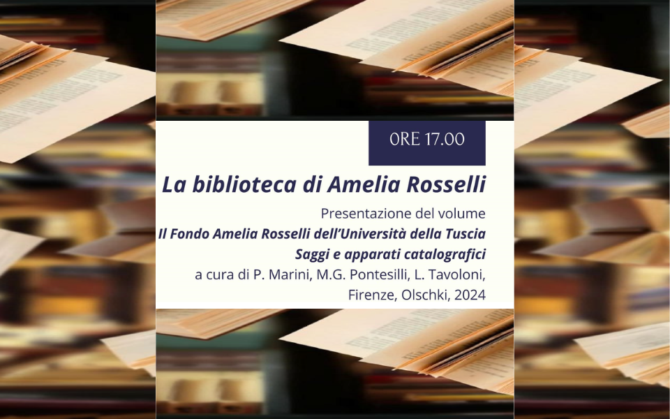 Lunedì 17 marzo alle ore 17:00, presso la Biblioteca Universitaria di Genova, si terrà la presentazione del volume dedicato alla biblioteca di Amelia Rosselli, conservata nel patrimonio librario di pregio dell’Università della Tuscia sin dal 1996. Il volume, corredato di un catalogo integrale aggiornato del Fondo e di una miscellanea di studi, è stato pubblicato nella collana “Biblioteca di bibliografia” dell’editore Olschki (Firenze 2024).