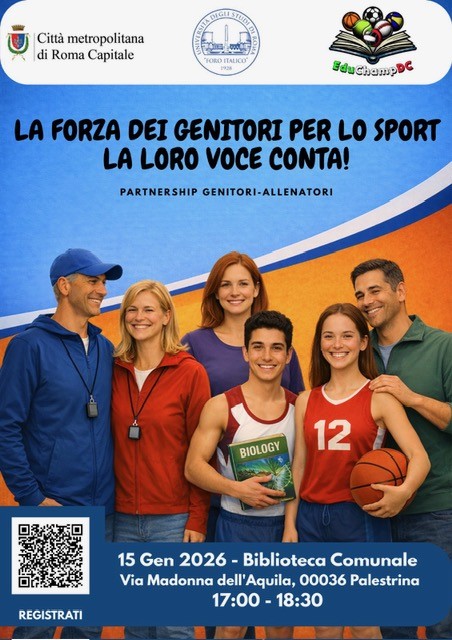 Si è svolto il 15 gennaio scorso, presso il Comune di Palestrina, il secondo appuntamento del progetto “La forza dei genitori per lo sport: la loro voce conta”, promosso dall’Università di Roma Foro Italico in collaborazione con Città Metropolitana di Roma Capitale. L’incontro ha fatto seguito alla prima tappa del 13 dicembre 2025, confermando l’impegno dell’Ateneo nel sostenere e diffondere la cultura della doppia carriera.
