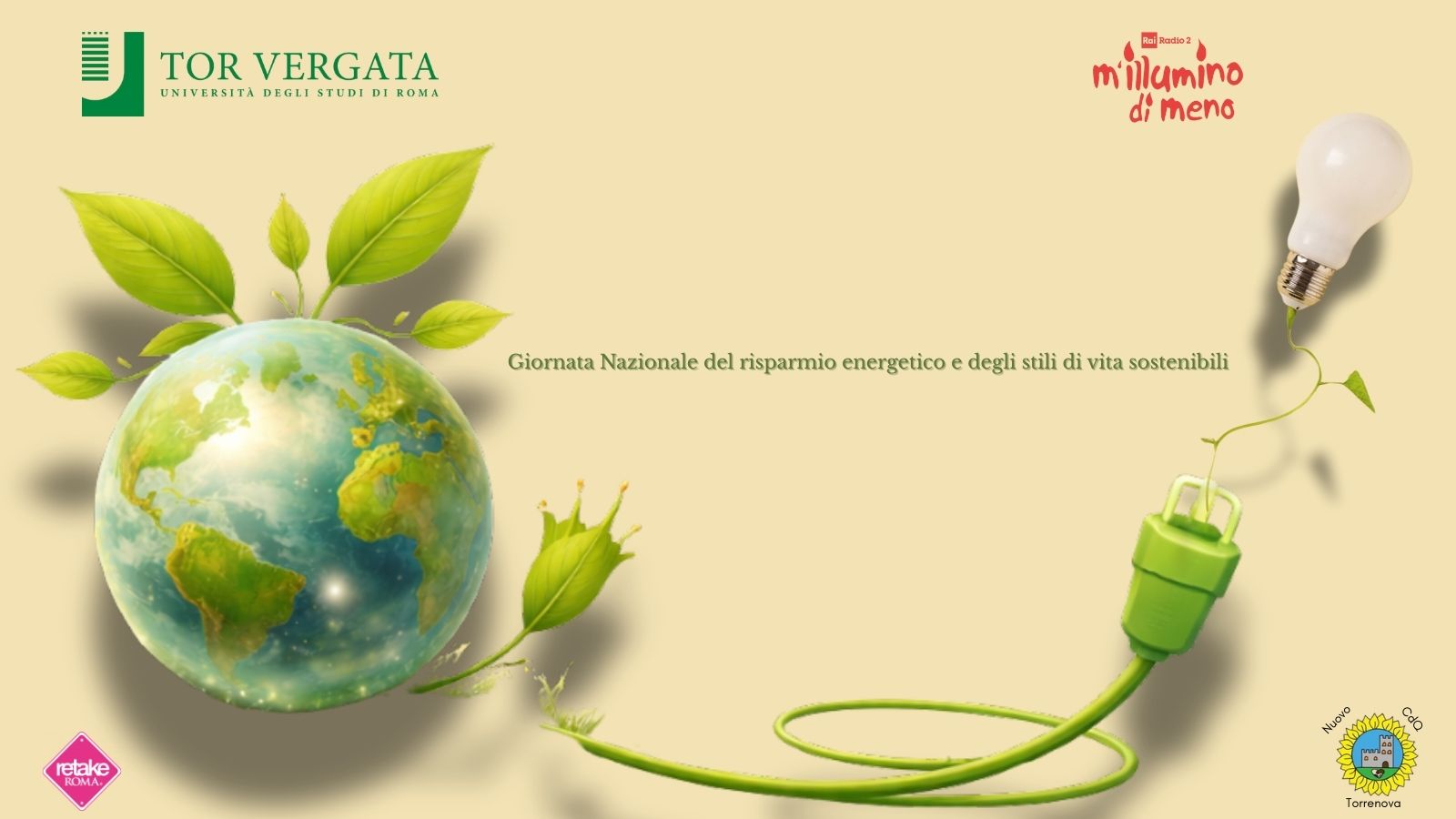 Venerdì 13 febbraio 2026 alle ore 9.30, presso la Facoltà di Economia dell’Università degli Studi di Roma Tor Vergata, nell’Aula I2 dell’Edificio A, si tiene un incontro aperto alle studentesse e agli studenti delle scuole del VI Municipio in occasione della Giornata Nazionale del risparmio energetico e degli stili di vita sostenibili, appuntamento dedicato alla diffusione di comportamenti responsabili e alla promozione di un uso consapevole delle risorse.