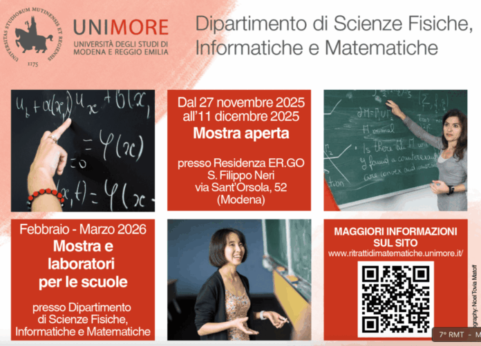 “Il progetto della mostra, finanziata dal bando di Public Engagement di Unimore, – afferma la responsabile del progetto prof.ssa Maria Manfredini di Unimore – prende avvio dalla mostra internazionale Women of Mathematics from around the World – A Gallery of Portraits, una raccolta di immagini e testimonianze di matematiche attive in ambito accademico e di ricerca in tutto. L’obiettivo principale è valorizzare il contributo delle donne alla matematica, offrendo al pubblico un percorso accessibile e ispirante. Il progetto mira a contrastare stereotipi di genere, promuovere l’orientamento consapevole e rafforzare il dialogo tra Università e territorio. Il progetto prevede laboratori didattici e attività partecipative per valorizzare il ruolo delle donne nella matematica e promuovere un approccio inclusivo alla scienza. Un’iniziativa tra cultura, formazione e cittadinanza attiva”.