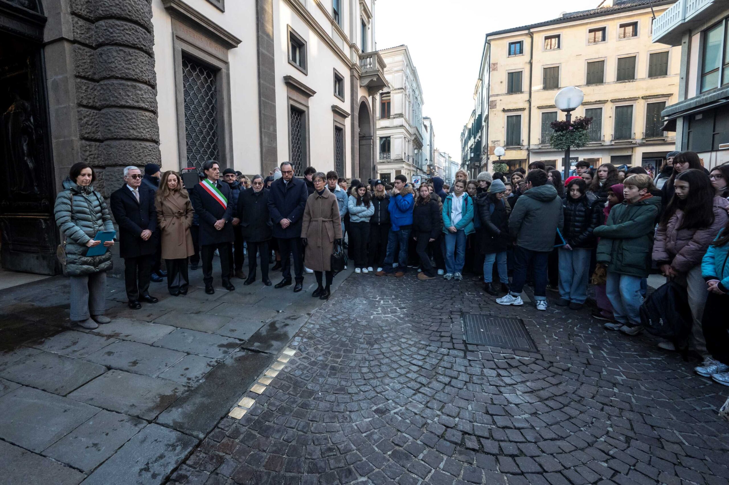 «Ci ritroviamo oggi davanti a Palazzo Bo, cuore storico dell’Università di Padova, per un gesto che è insieme semplice e profondissimo: lo scoprimento di una pietra d’inciampo. Un segno discreto, incastonato nel tessuto della città e della vita quotidiana, che ci invita a fermarci, ad abbassare lo sguardo, a ricordare. Il Giorno della Memoria non è mai un rito formale. È un appuntamento che interpella le nostre coscienze, che ci chiede di misurarci con uno dei punti più bui della storia europea e italiana, e di farlo non solo con lo sguardo rivolto al passato, ma con una responsabilità pienamente rivolta al presente e al futuro – ha esordito Daniela Mapelli, rettrice dell’Università di Padova -. Le pietre d’inciampo, sparse ormai in decine di migliaia di luoghi in Europa, hanno proprio questa forza: ci sottraggono alla distanza astratta dei grandi numeri e restituiscono alla storia il volto delle persone. Ogni nome inciso è una vita concreta, fatta di relazioni, di studio, di lavoro, di speranze. Ed è anche un monito: ciò che è accaduto non è stato inevitabile, né improvviso. Ricordare Leopold Götz oggi non significa soltanto restituire un nome e una storia a chi ne è stato privato. Significa riconoscere come le università, le scuole, le città – luoghi di sapere, di confronto, di crescita – non siano mai spazi neutri, ma riflettano le scelte e i valori di una società. (…) Ragazze e ragazzi che non hanno conosciuto quei racconti in famiglia, che vivono in un tempo in cui l’odio, l’esclusione e il linguaggio della disumanizzazione tornano a circolare con inquietante facilità – ha continuato Daniela Mapelli -. A loro, e a tutte e tutti noi, la memoria serve non come rifugio nel passato, ma come strumento critico per leggere il presente. (…) Per questo una pietra d’inciampo, così piccola e silenziosa, assume una forza simbolica straordinaria. Ci ricorda che libertà, pace, diritti non sono mai definitivamente acquisiti. Vanno custoditi, difesi, rinnovati ogni giorno attraverso le scelte individuali e collettive. Oggi, davanti a Palazzo Bo, inciampando simbolicamente in questo nome, rinnoviamo un impegno comune: a non dimenticare, a non essere indifferenti, a fare dell’Università uno spazio sempre aperto, inclusivo, fondato sul rispetto della persona e sulla responsabilità del sapere. È questo – ha concluso la Rettrice – il modo più autentico per onorare Leopold Götz e tutte le vittime della Shoah: mantenere viva una memoria che sappia parlare al presente e orientare il futuro».