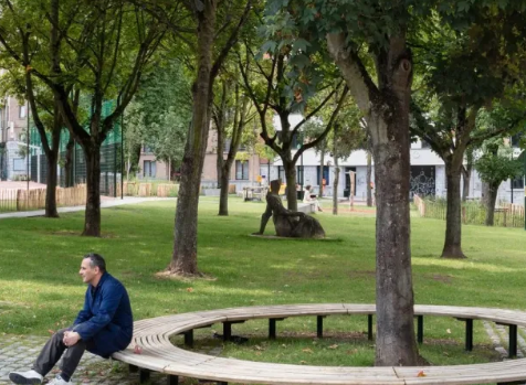 Il progetto di riqualificazione si basa sui diversi utilizzi del sito, che non è propriamente né un parco, né una piazza, e si presta come spazio per giochi, sport, relax e incontri. Gli alberi esistenti sono stati preservati, le auto sono state rimosse dall’area, gli spazi verdi sono stati collegati tra loro e sono stati aggiunti tre padiglioni. Progettato per essere un collage vivente, il progetto accoglie usi multipli, a volte inaspettati, e invita i residenti a utilizzare lo spazio collettivamente. Fa parte di una più ampia dinamica di trasformazione urbana, in cui lo spazio pubblico si avvia a essere un luogo di sperimentazione, convivenza e narrazione condivisa.