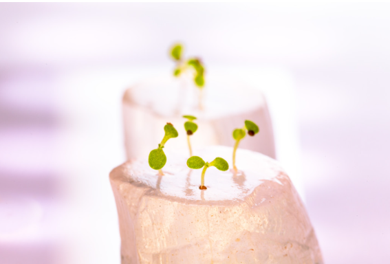 In particolare, nei laboratori dell’IIT di Genova è stata realizzata un’impalcatura in idrogel biopolimerico con l’aggiunta di biostimolanti naturali che permette di coltivare piante in coltivazioni fuori suolo (idroponica) e dunque con pochissima acqua, con materiali biodegradabili che si disintegrano nel terreno senza residui. Il biopolimero utilizzato è la carragenina, un polisaccaride estratto dalle alghe rosse che viene comunemente usato per le sue proprietà gelificanti, addensanti e stabilizzanti.