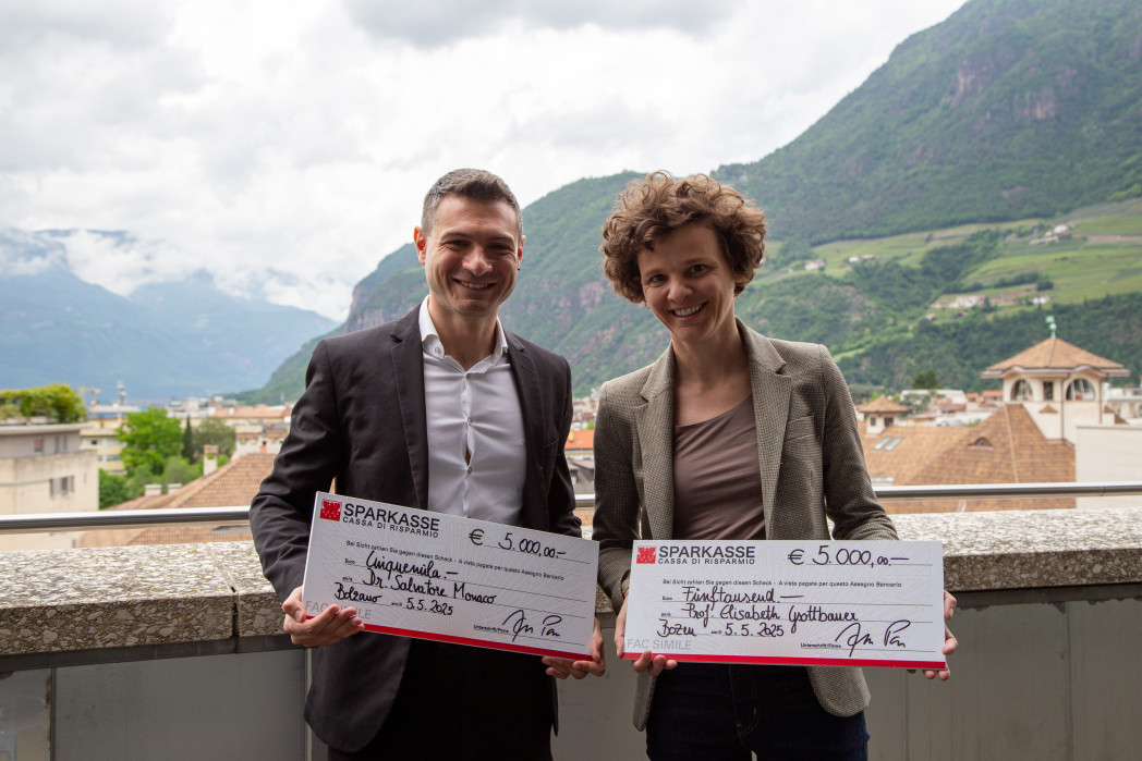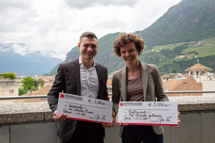 Premiati la Prof.ssa Elisabeth Gsottbauer e Salvatore Monaco con il riconoscimento finanziato dalla Fondazione Cassa di Risparmio di Bolzano e dalla Cassa di Risparmio di Bolzano.