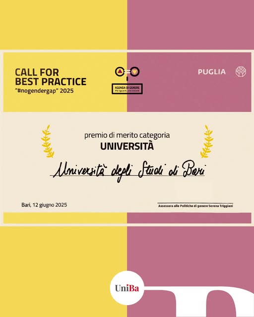 UniBa tra i 10 progetti vincitori su 41 candidati alla “Call for best practice #nogendergap” edizione 2025, l’azione regionale pensata per conoscere e valorizzare le migliori pratiche.