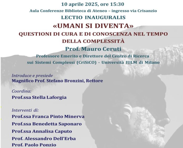 Mauro Ceruti terrà una lectio magistralis il 10 aprile alle 15.30 presso la Biblioteca di Comunità di di UniBA, un evento aperto alla comunità accademica ed alla cittadinanza intera, inaugurando due corsi in Competenze Trsversali promossi dall’Ateneo barese: uno per studenti ed esterni, “La complessità nella relazione: take care to care”, ed uno per docenti UniBA, “”La complessità nella relazione: take care to care”.
