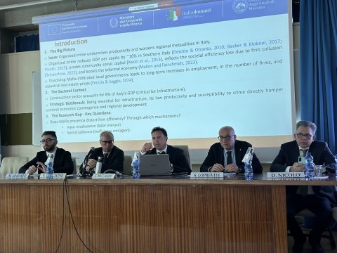 Si è svolta nei giorni scorsi, presso l’Aula Magna 2 del Dipartimento di Economia dell’Università di Messina, la Final Conference del progetto PRIN 2022 PNRR dal titolo “The Effect of Organized Crime on Firm Technical Efficiency and R&D Investments”, il cui obiettivo è stato quello analizzare l’impatto della criminalità organizzata sull’efficienza tecnica delle imprese e sugli investimenti in ricerca e sviluppo.