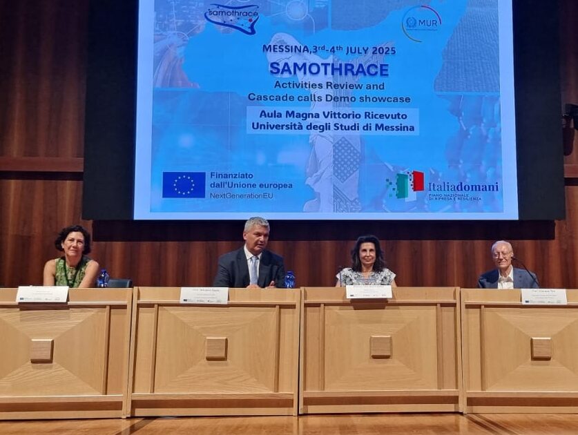 È stata inaugurata stamane, presso l’Aula Magna “Vittorio Ricevuto” al Polo Papardo, la due giorni dedicata al progetto “SAMOTHRACE –July 2025 Activities Review and Cascade calls Demo”. A meno di un anno dalla conclusione delle attività (attualmente prevista per febbraio 2026) l’evento costituisce l’opportunità per presentare alle autorità, alla società civile ed agli stakeholder una ampia panoramica sui principali risultati ottenuti in campo innovativo e tecnologico, con le società beneficiarie di contestuali bandi a cascata che hanno presentato – nell’arco della prima giornata – lo stato di avanzamento delle attività di loro responsabilità, esponendo i Demo sperimentali e i prototipi, ottenuti nei rispettivi progetti selezionati e finanziati dall’ecosistema Samothrace, con potenziali applicazioni industriali e commerciali.