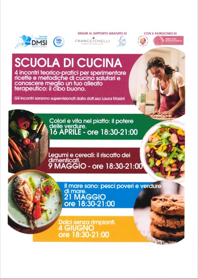 All’interno delle attività dell’ambulatorio di medicina integrata dell’ospedale “G. Bernabeo” di Ortona, il Dipartimento di Medicina e Scienze dell’Invecchiamento dell’Università degli Studi “Gabriele d’Annunzio” di Chieti-Pescara, col supporto gratuito delle Lady Chef d’Abruzzo e di “Franceschelli Distribuzione” ed il patrocinio della ASL02 di Lanciano-Vasto-Chieti, ha organizzato un corso teorico-pratico di cucina in cui le pazienti oncologiche dell’ambulatorio, insieme ai medici e al personale sanitario dell’Eusoma Breast Center della ASL, miglioreranno la propria conoscenza in ambito nutrizionale e culinario ai fini della promozione della salute.